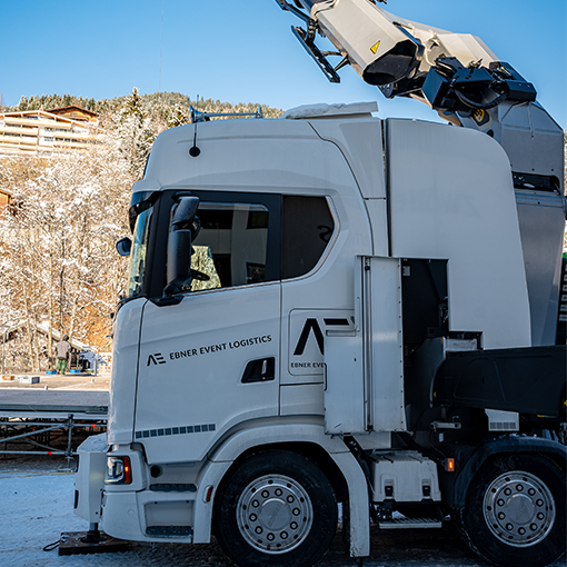 Eigener Fuhrpark für europaweite Eventlogistik, sichere Transporte und abgestimmte Abläufe.